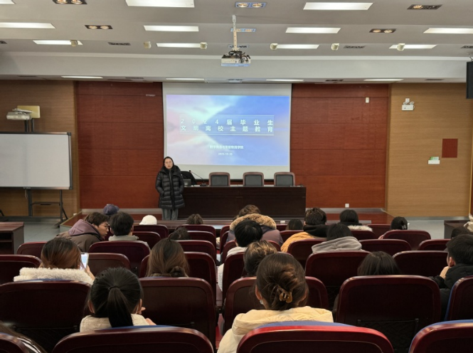 文明离校教育环节,学院公寓辅导员张静老师强调了文明离校的重要性,希望毕业生们能够以积极、健康的心态离开学校,以蓬勃昂扬的姿态积极面对今后的学习生活。
