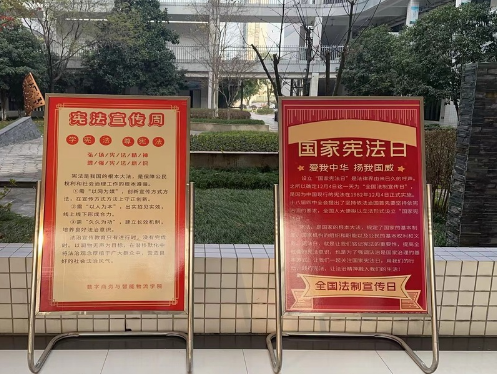 为营造尊崇宪法、遵守法律的浓厚氛围,我院通过多种形式的宣传教育和实践体验向广大师生普及宪法知识和相关法律法规。包括(1)宪法宣传环境布置,利用校园展板、QQ、微信公众号等多种宣传阵地向学生普及了宪法的基本知识、意义和重要性,线上线下创建法治宣传氛围;(2)开一次宪法教育主题班会,以课堂为主渠道,通过向学生宣讲《中华人民共和国宪法》、讲解宪法案例、分析当前热点问题、观看法制宣传视频等方式,提高学生的法律意识和自我防范意识,引导学生厚植爱国主义情怀;(3)12.4国家宪法日当天,组织我院新生利用早自习时间开展“宪法晨读”活动,通过普法网观看直播,大力弘扬宪法精神,号召全体学生共同维护宪法权威;(4)开展宪法手抄报评比活动,增强了学生们的法治意识和法律素养;(5)鼓励唱响《宪法伴我们成长》主题曲,让学生感受成长的道路上有宪法为我们保驾护航。