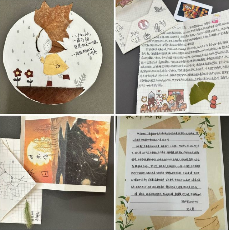 9月13日-9月23日开展了系列“秋日时光信—秋风信差”主题活动。秋风有信,秋月无边,同学们在金秋时节采集落叶、提笔抒怀,通过感谢信、给自己的时光信、秋叶心语等多种形式,精心制作、书写了一个个温暖、有趣的作品,借此探索自己的内心世界,体验真实的情感,认真感受时间、季节和生命的变化,学会尊重自然、热爱生活,共度美好的新学年。9月中旬,各班级以“润心航行促成长”为主题开展了班会,一起回顾暑假生活,调适开学后的心理状态,普及心理健康的重要意义,提供心理援助的资源和方法等。9月下旬,组织学校心理骨干开展了期初会议,回顾上学期工作亮点,展望本学期工作要点,重申自助与助人的工作方法。