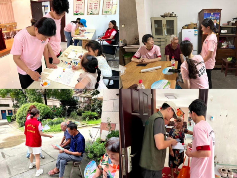 二、开展了“锤炼品德修为、秉承务实作风”专题活动。实践团队深入南通开发区星月社区做志愿。在7月23日社区中小学生专场中,实践团队先是结合传承红色基因系列活动的所学所思,向现场的“小观众”们讲述董存瑞舍身炸暗堡、海娃巧送鸡毛信等系列红色故事;随后带领孩子们朗诵了革命诗歌,缅怀了革命先辈;最后以“童心绘未来,共创文明城”为主题,实践团队精心指导孩子们绘画作品,绘画作品主题突出、内容丰富、构图活泼,展示了孩子们朝气蓬勃的精神面貌,表达了共创文明城市的坚定信心。7月24日实践团队面向星月社区居民,开展了防诈骗宣传普及教育活动和探访独居老人活动,一方面提高了社区居民防诈骗意识,另一方面也给独居老人送去了温暖。