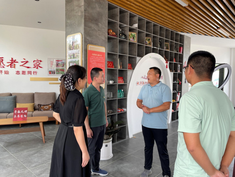 在调研活动中,一行人参观了服务中心的服务大厅、乡践客厅、人大代表工作站、纪委“三清示范点”等功能场所。通过深入交流,了解到老范村党支部围绕乡村振兴战略,依托1.3万亩的水蜜桃产业,发展水蜜桃上下游产业链,牵头领办苏桃果蔬合作社、匠艺工坊有限公司,从事水蜜桃种植、产品深加工、冷链仓储、物流运输等业务。为进一步打开市场,利用直播营销带货方式,实现线上线下销售渠道,形成了“党支部+合作社+家庭农场+农户”、“党支部+合作社+公司”的发展模式,在促进集体增收与村水蜜桃经济发展中发挥了先锋模范作用。随后,结合供销社事业发展,双方就乡村振兴发展需要的人才展开了深入探讨和交流。