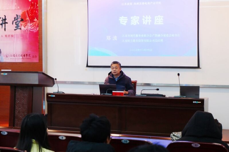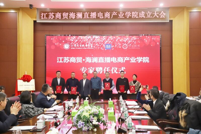 为深入贯彻国务院办公厅《关于推动现代职业教育高质量发展的意见》、江苏省委办公厅《关于推动现代职业教育高质量发展的实施意见》要求,优化职业教育供给结构,深化产教融合合作共建,推进校企协同育人,江苏商贸·海澜直播电商产业学院成立大会暨第一届理事会1219日在我校举行。海澜之家集团股份有限公司人力资源总监吉敏生,江苏特立教育投资有限公司董事长陈志远,学校党政领导班子成员、相关职能部门负责人及师生代表等近70人参加了本次会议。成立大会由副校长张晓燕主持。