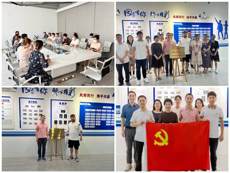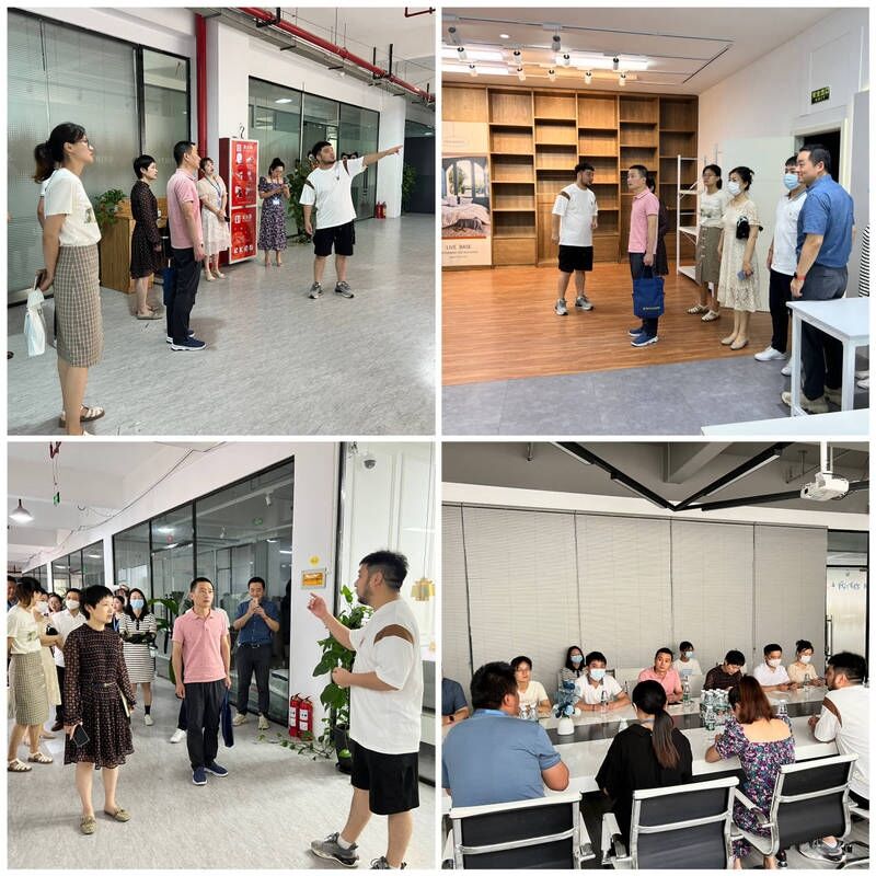 一行人在企业方的带领下参观了企业客服部、运营部、直播部等工作场景。随后校企双方进行了研讨会,企业方代表许宗胜副总经理致辞对我院党员教师的到来表示了热切的欢迎,我院何晓光院长向企业方介绍了学院情况,双方围绕教学、人才培养、学生实习、就业基地、校企师资培养等方面进行了合作研讨。最后,校企双方共同为“党建+产教融合基地揭牌,并合影留念。
