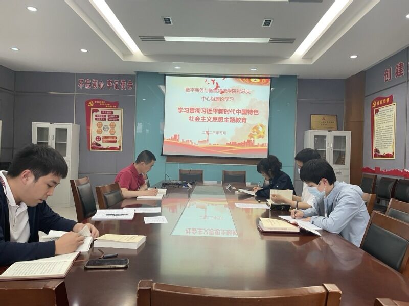 为深入开展学习贯彻习近平新时代中国特色社会主义思想主题教育,2023年5月17日,数字商务与智能物流学院党总支理论中心组成员在2号楼306开展了专题学习交流。