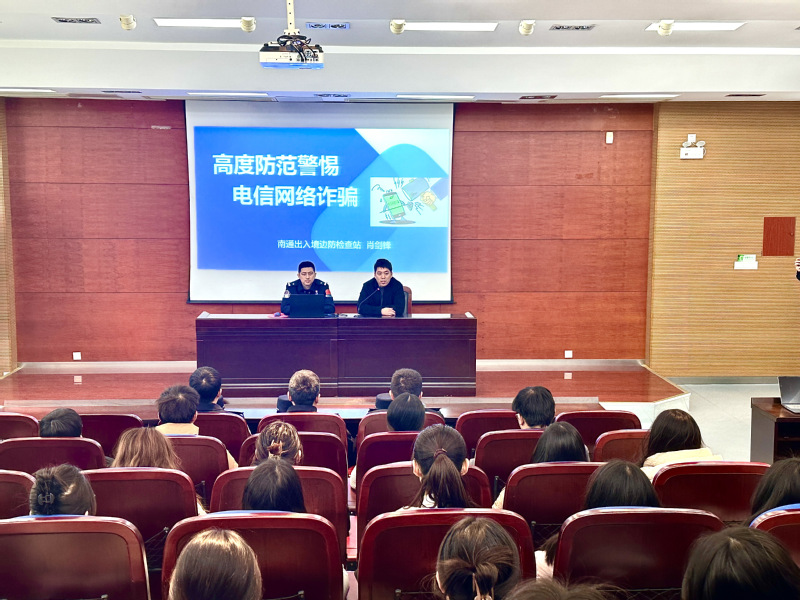 为构筑清朗校园,提升学生防范电信网络诈骗的能力,3月20日下午,数字商务与智能物流学院邀请国家移民局南通出入境边防检查站崇川执勤队一行于学院报告厅举办了一场主题为“紧绷防范之弦,远离诈骗之害”的反诈专题讲座。学院本部及通州湾校区的学生们通过线上线下相结合的方式积极参与,学院学生工作办公室主任孙鹏及相关辅导员们出席本次讲座。