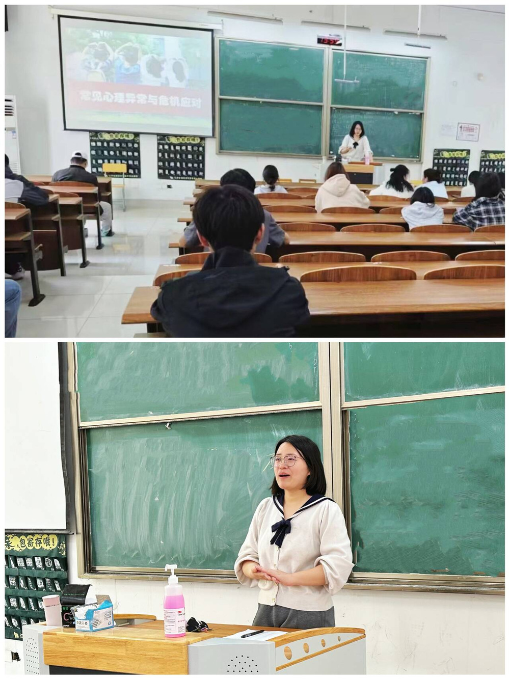 随后,张老师以“校园春季心理危机信号识别”为主题,开展了专题讲座,围绕“心理异常的概念、常见的心理异常类型、心理危机的识别与应对”等内容,帮助心理骨干们梳理日常摸排工作中的要点和难点,以便更好地为同学们开展心理服务。张老师在讲座末尾再次向大家强调“求助是强者的行为特征”,要求心理骨干在班级加大对心理求助方式的宣传和普及,鼓励有需求的同学大胆求助,以收获心灵成长。活动最后,同学们针对讲座内容进行了分组讨论与交流。