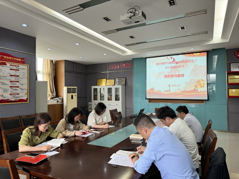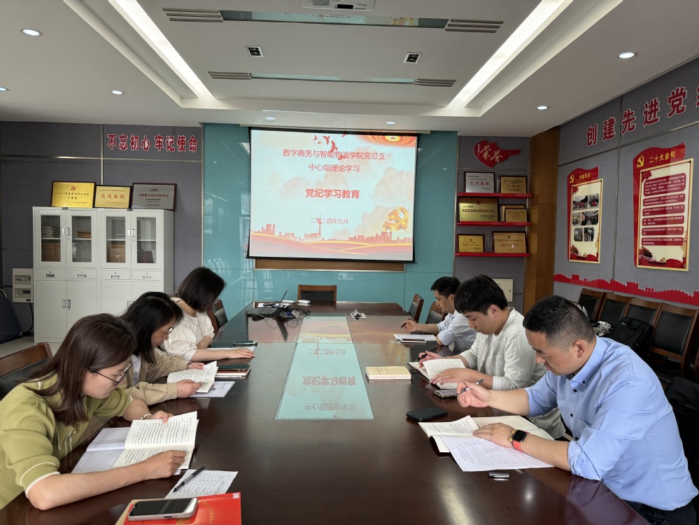 5月21日下午,数字商务与智能物流学院党总支理论学习中心组在2号楼306会议室开展党纪学习教育集中学习交流会,会议由党总支书记吴佳庆主持,党总支理论学习中心组全体成员参加。