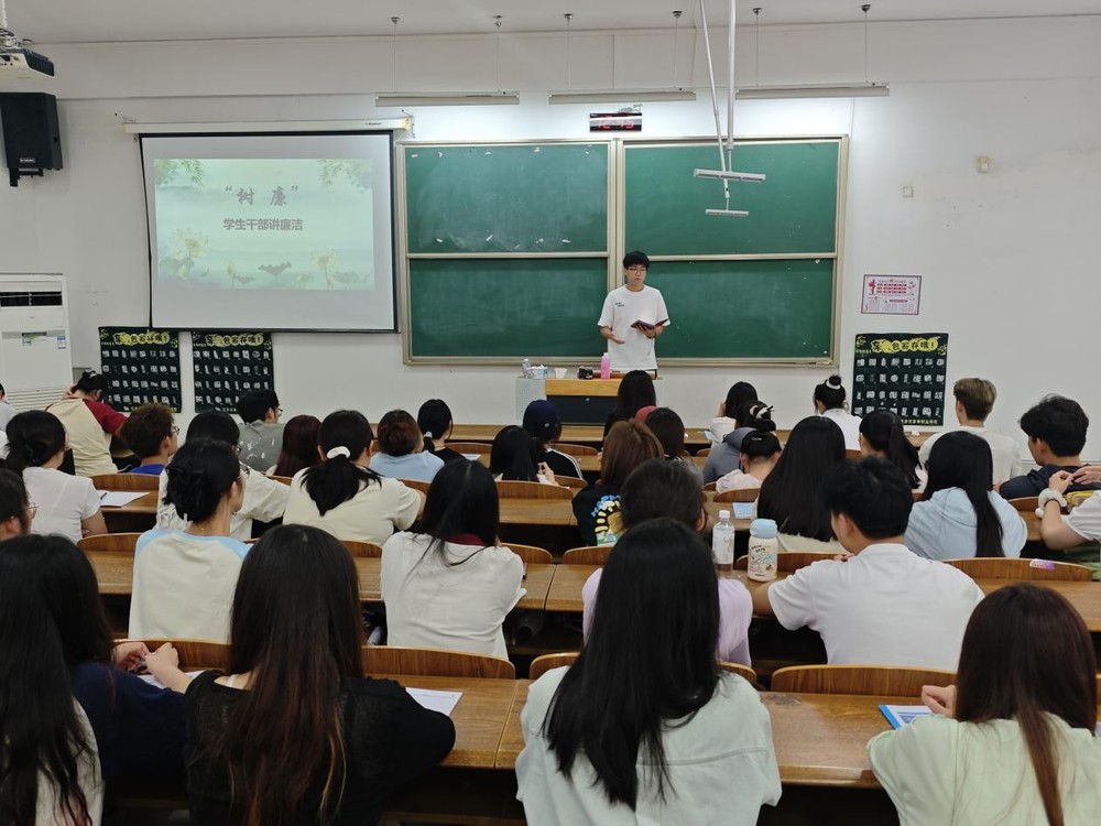 9月11日中午,学院分团委书记张婉婉组织全体学生会干部召开期初会议,会议第一个环节便是树立学生干部廉洁榜样,邀请学生干部分享个人工作经历,倡导大家扣好廉洁扣子,弘扬廉洁精神,真正做到廉洁奉公、服务学生。