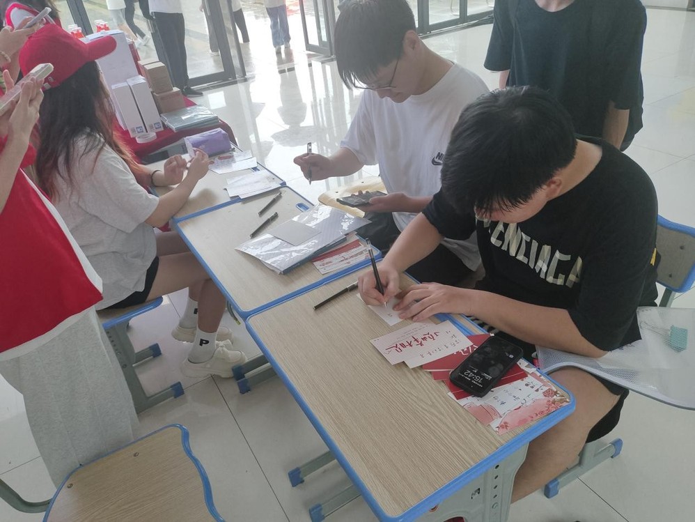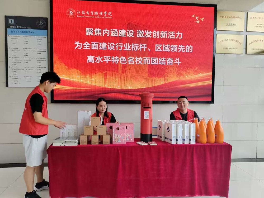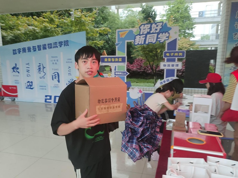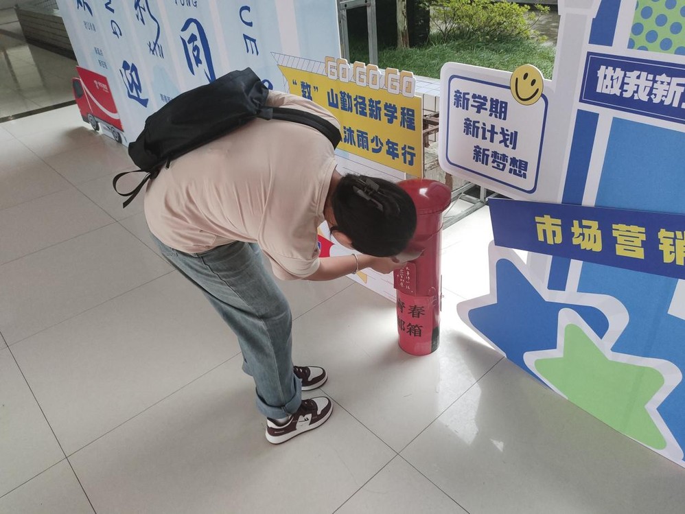 进入学院门厅,首先映入眼帘的是创意十足的打卡处,供学生和家长们自由拍照留念,记录下这一段珍贵的开学之旅;门厅左侧设置了特色签到墙,来自五湖四海的同学们,在印有中国地图的签到墙上找到自己家乡的位置并贴上签名标签,通过颜色对包邮、非包邮地区的划分,让同学们对物流配送区域有了初步的认识;新同学将自己对未来的期待写在心愿卡片上,塞入“青春邮筒”,寄给三年后的自己。值得一提的是学院还准备了诸多迎新礼物,有开学必备的洗漱礼盒,有学习耳机和护眼台灯,更有印着迎新主题和学院名称的记事本。