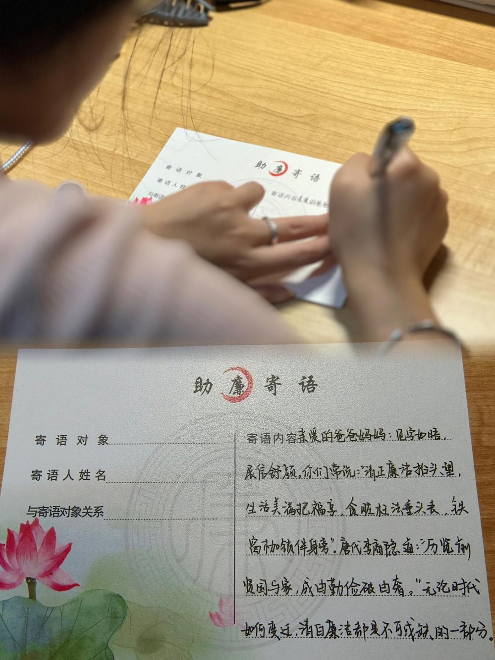中秋圆月既是阖家欢乐的见证,也是公正光明的象征,为引导全院学生佳节思亲亦思清,守好廉洁自律心,914日,学院分团委书记张婉婉携手公寓辅导员季妩蔚、心理辅导员张慧君在学生一站式社区“志园”举办了多项互动性活动,如“别碰红线”套圈游戏,站在红线后套中心仪物品,用心保护“好作风”;书写“廉洁家书”活动,算好家庭廉政帐,用心守护“好家风”;“廉送清风”漆扇活动,学生现场学习漆扇非遗技艺,用心拥护“好学风”。