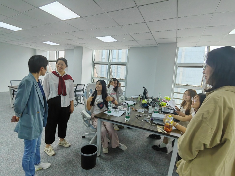 在云尚传媒有限公司,师生代表们首先参观了该公司的电商直播基地。学院师生在参观过程中,认真听取了公司总经理乔治文关于直播电商市场趋势、业务模式及未来发展规划的介绍,交流过程中企业方对参加此次直播培训的七名同学给予了高度评价,学生们也纷纷表示此次企业实践培训受益匪浅,收获了宝贵的一线经验,激发了他们对未来职业生涯的无限遐想与热情。