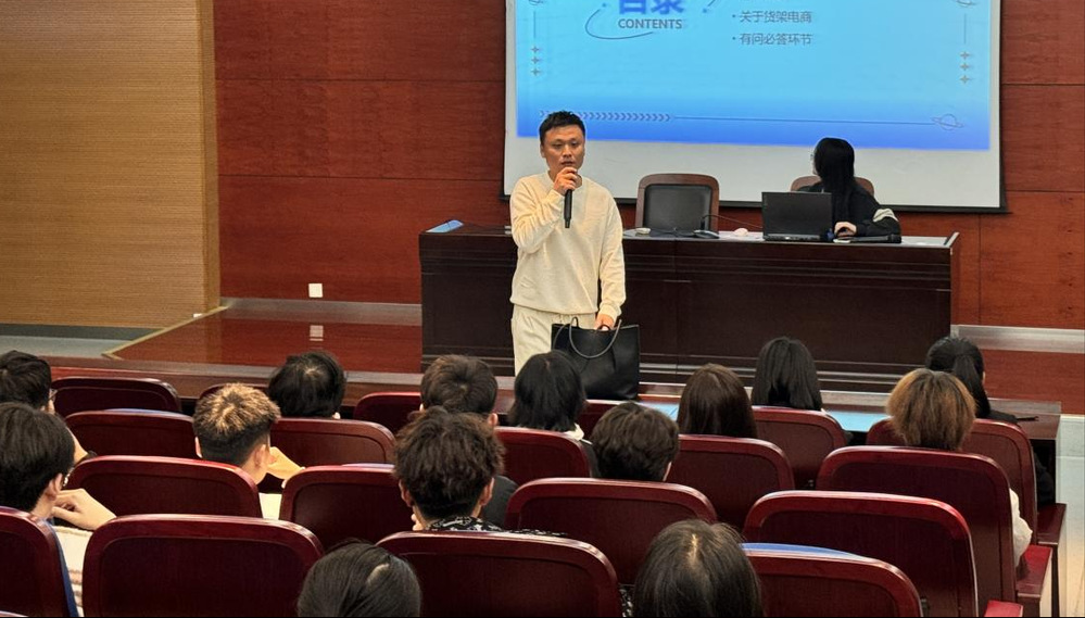 为进一步推进产教融合,深化校企合作,2024年10月30日,数字商务与智能物流学院与校企合作单位南通云尚传媒有限公司联合举办了一场别开生面的直播公开课,公司总经理乔治文携手本院跟岗实习的学生团队为我院网络营销与直播电商S22级学生带来了一场理论与实践相结合的知识盛宴。此次活动旨在通过分享企业实战经验,拓宽学生的行业视野,提升他们对直播电商行业的专业认知。
