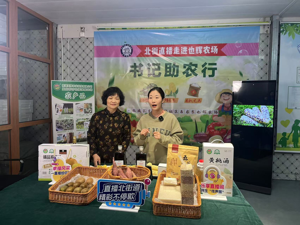 “……各位宝贝们,今天给大家带来了启东市光荣村农场特有的黄桃酒、五彩米、桑葚酒等特色农产品,大家千万不要错过哦……。”11月6日下午,施灏津与启东市光荣村农场主一起对村里的猕猴桃,五彩米,糯玉米,自酿桑葚酒、黄桃酒等农产品进行了热情解说,在直播的两个小时里,观看人次最高达4000多人,销售额达9200余元。