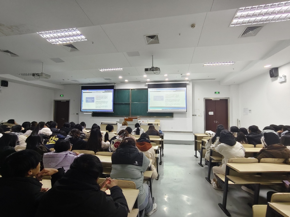 为营造良好的学习氛围,帮助我院学子明确学习规划方向,掌握学习应考技巧,提升学习动力,数字商务与智能物流学院于11月26日在通州湾校区开展优秀校友专转本线上分享会。此次活动由学院辅导员陈淋主持,电子商务S214班优秀毕业生雍宏彬主讲,她以优异成绩被南京晓庄学院录取。2024级电子商务专业和智能物流技术专业260余名新生参加此次活动。