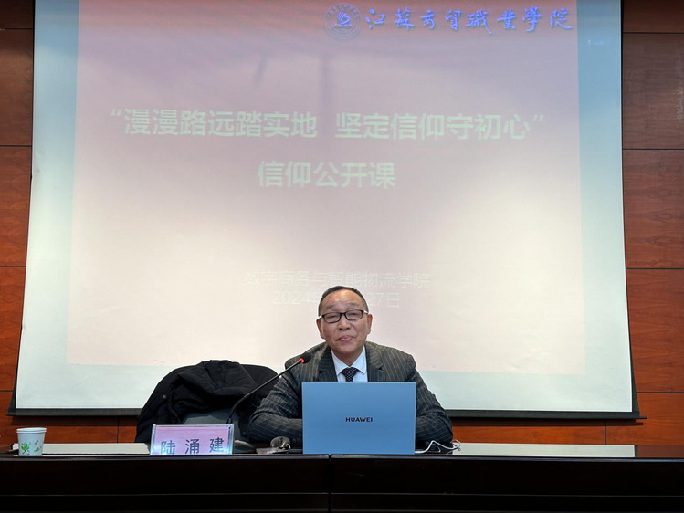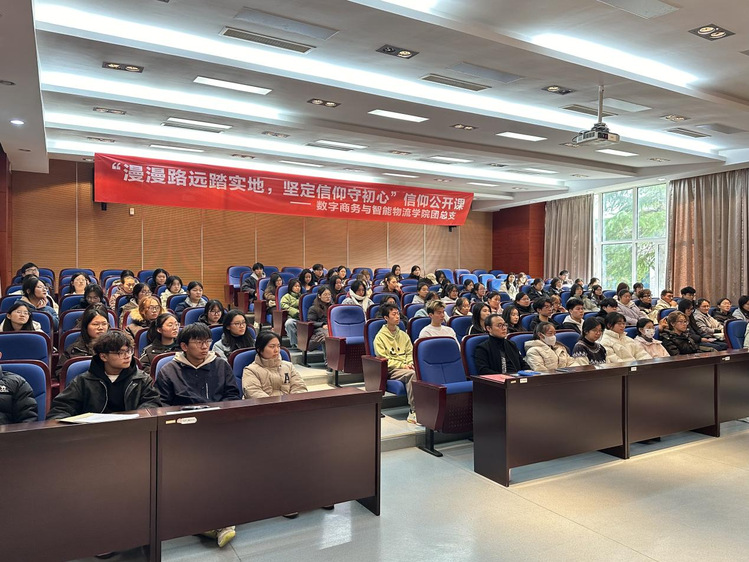 11月27日下午,数字商务与智能物流学院在101报告厅开展“漫漫路远踏实地,坚定信仰守初心”主题信仰公开课活动。本次信仰公开课有幸邀请到南通市硬笔书法家协会党支部书记陆涌建来学院主讲,活动由分团委书记张婉婉主持,学院团员干部、学生会干部共计120余人参加。