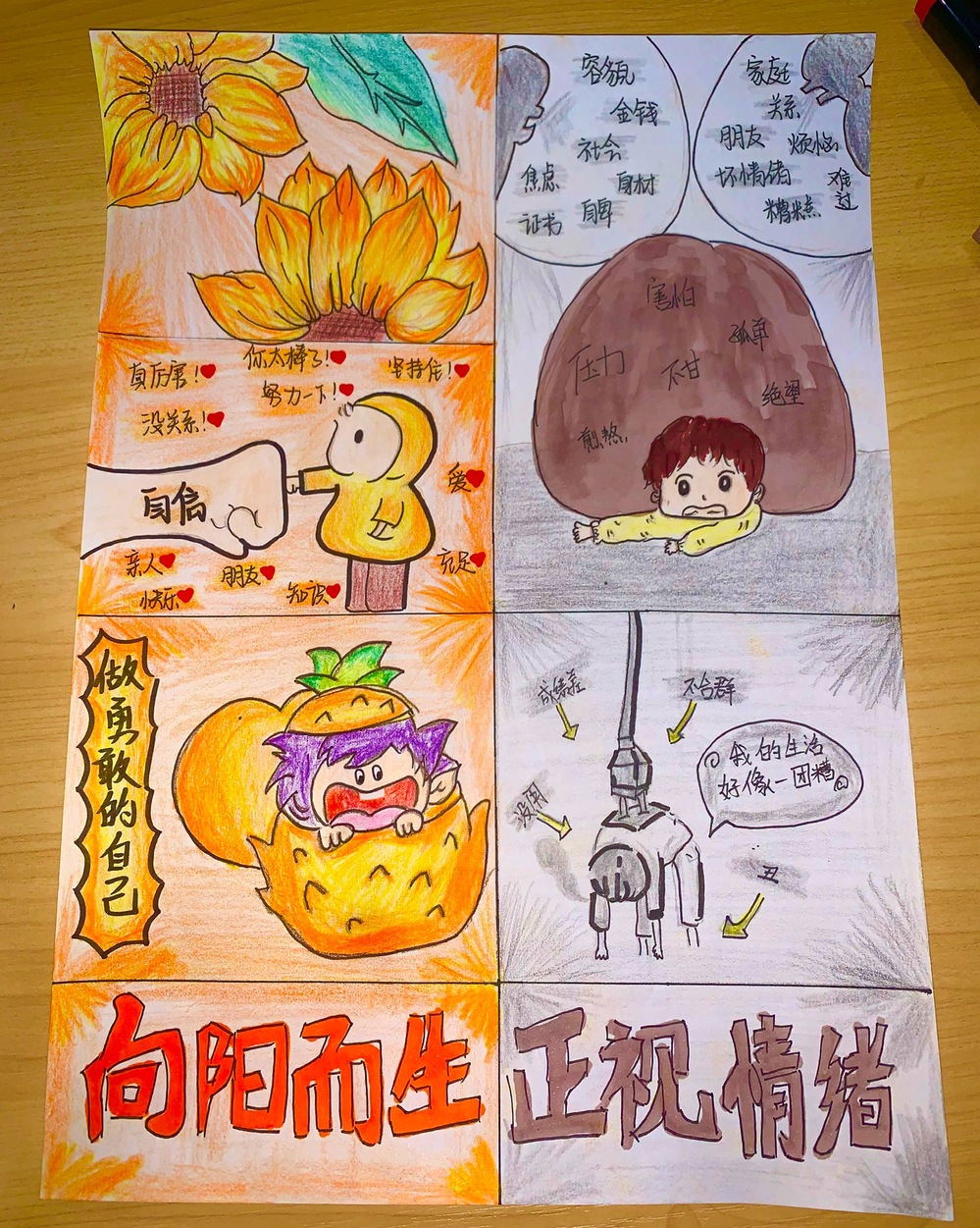 参赛同学怀揣对生活、学习的细腻感知,用色彩和线条发挥创造力和想象力。心理漫画的创作诠释了学生对心理健康内涵的理解,帮助他们培养良好的人际交往和学习心态。
