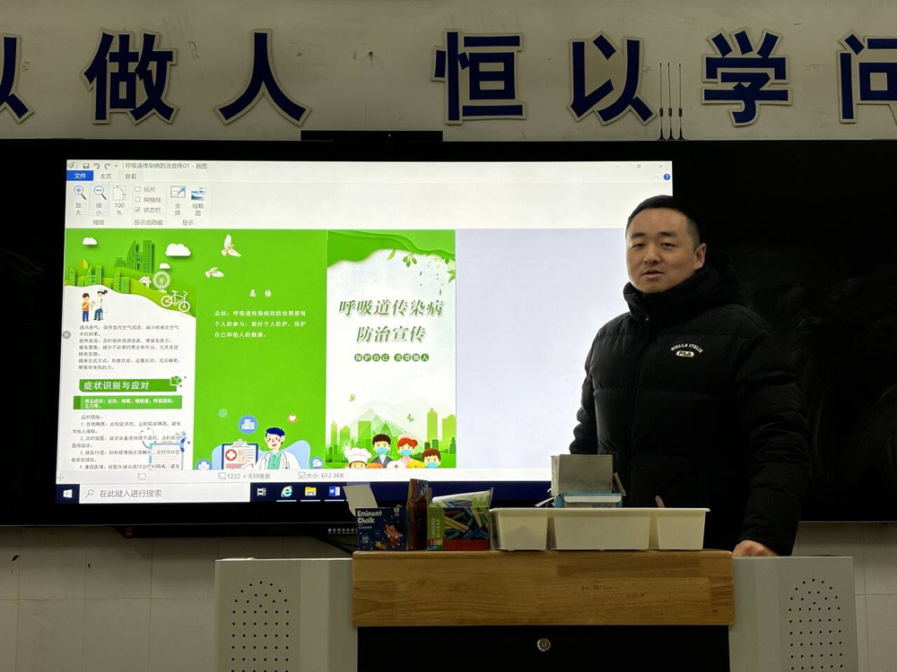 在校园内,辅导员老师走进班级,利用主题班会向同学们普及传染病防控知识。采用视频、图片、案例等方式,让同学们更加直观地了解传染病的危害。同时设置了问答环节,吸引同学们积极参与互动,现场气氛热烈。此外,在校园主干道志愿者们主动对师生们温馨提示,宣传健康防病知识。