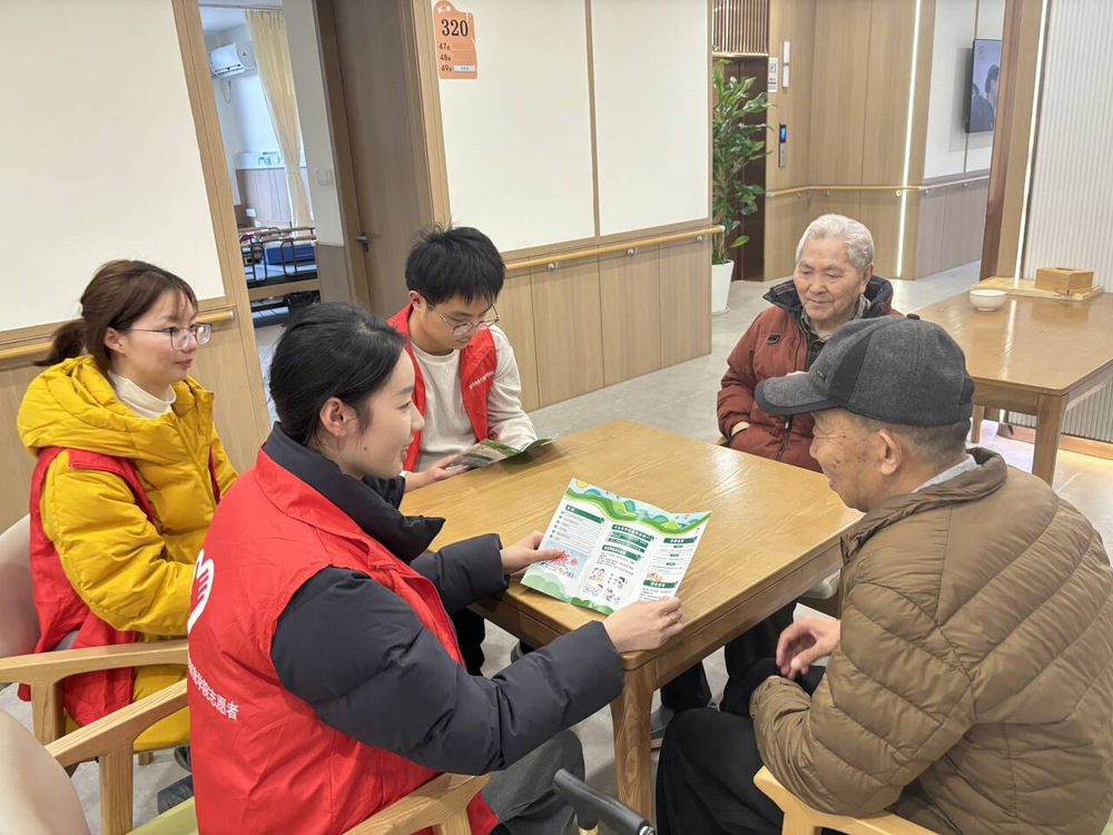 在社区养老院,辅导员老师和志愿者们为老人们精心准备了传染病防控宣传册页,并用通俗易懂的语言向老人们讲解流感、肺炎、普通感冒等春季常见传染病的症状、传播途径、危害以及预防措施,细心指导他们如何做好日常防护。