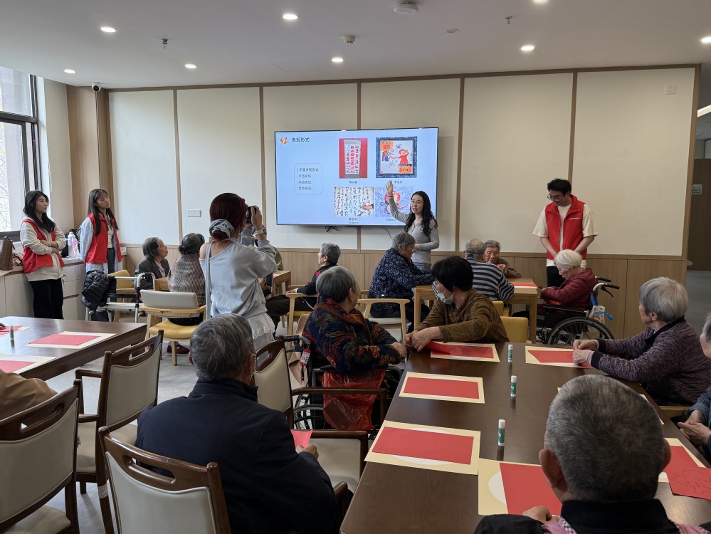 为传承和弘扬中华优秀传统文化,同时丰富敬老院老人的精神文化生活,4月9日下午,数字商务与智能物流学院分团委书记张婉婉带领红色背篓志愿服务团队成员走进南通礼乐护理院,开展了一场别开生面的“非遗撕纸传温情,青银互动暖夕阳”主题志愿服务活动。此次活动将传统技艺、创意互动与情感陪伴巧妙融合,让老人们在亲身体验中领略传统文化的独特魅力。