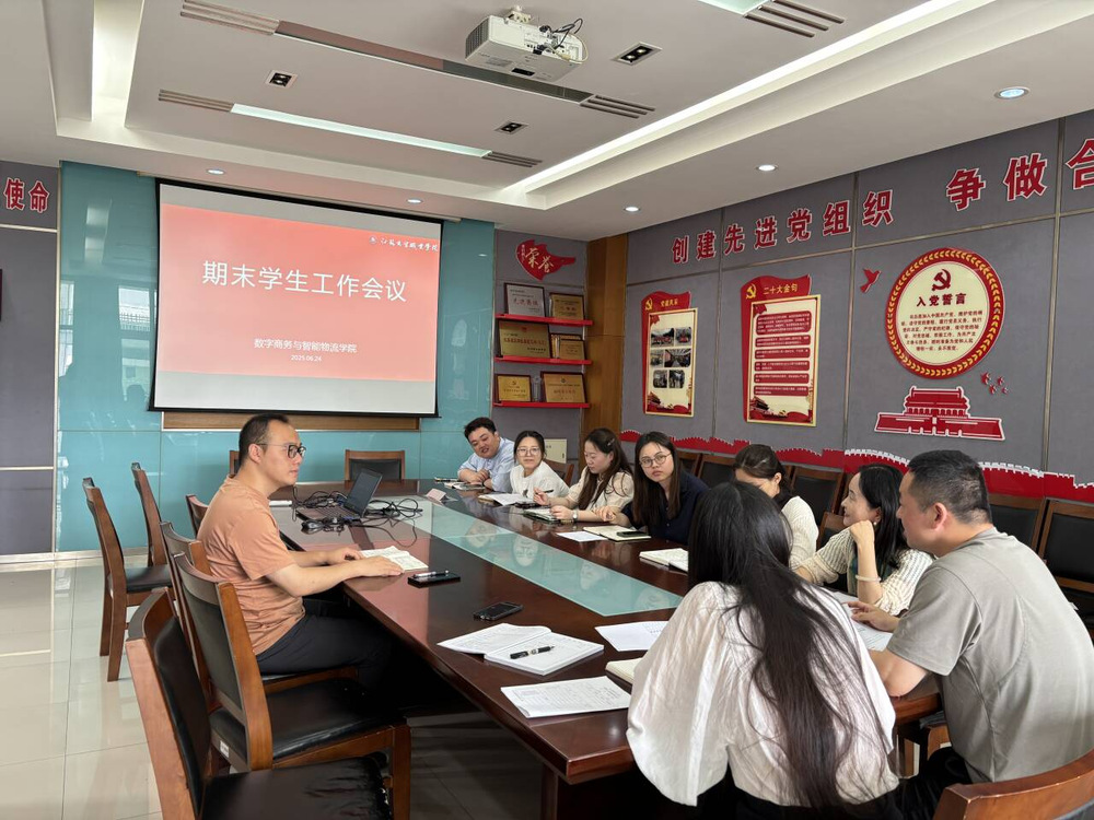6月24 日上午,数字商务与智能物流学院在2号楼306会议室召开期末学生工作专题会议,学院全体辅导员参会,会议由学工办主任胡成旭主持。