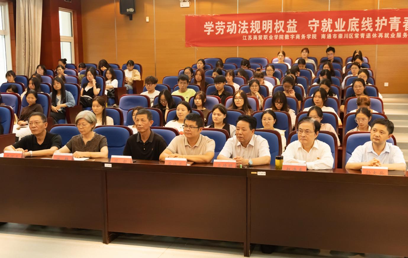 金秋九月,硕果初绽。9月24 日下午,数字商务学院在敏行楼 101 报告厅圆满举办“法治护航助成长,校社联动育新人”主题活动。本次活动聚焦二年级学生法治素养与职业发展需求,通过校社协同搭建学习平台,将法治教育与实践指导深度融合,为学生健康成长与未来职业规划筑牢法治根基。