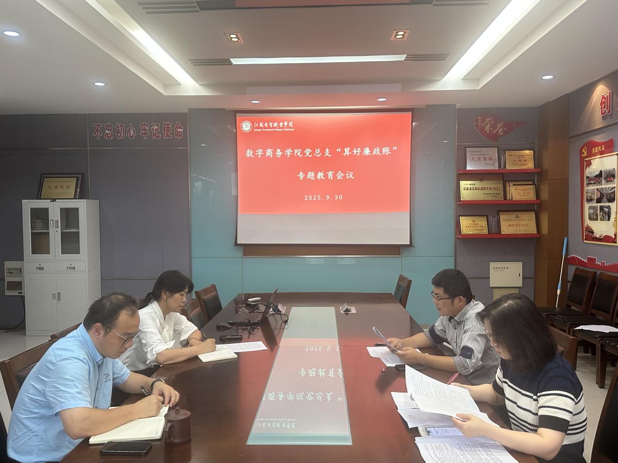 为进一步加强党风廉政建设,推动全面从严治党走深走实,9 月 30 日下午,数字商务学院党总支在敏行楼 306 会议室组织召开中心组学习会议,专题开展“算好廉政账”教育学习。会议由党总支书记黄晓龙主持,中心组全体成员参加。