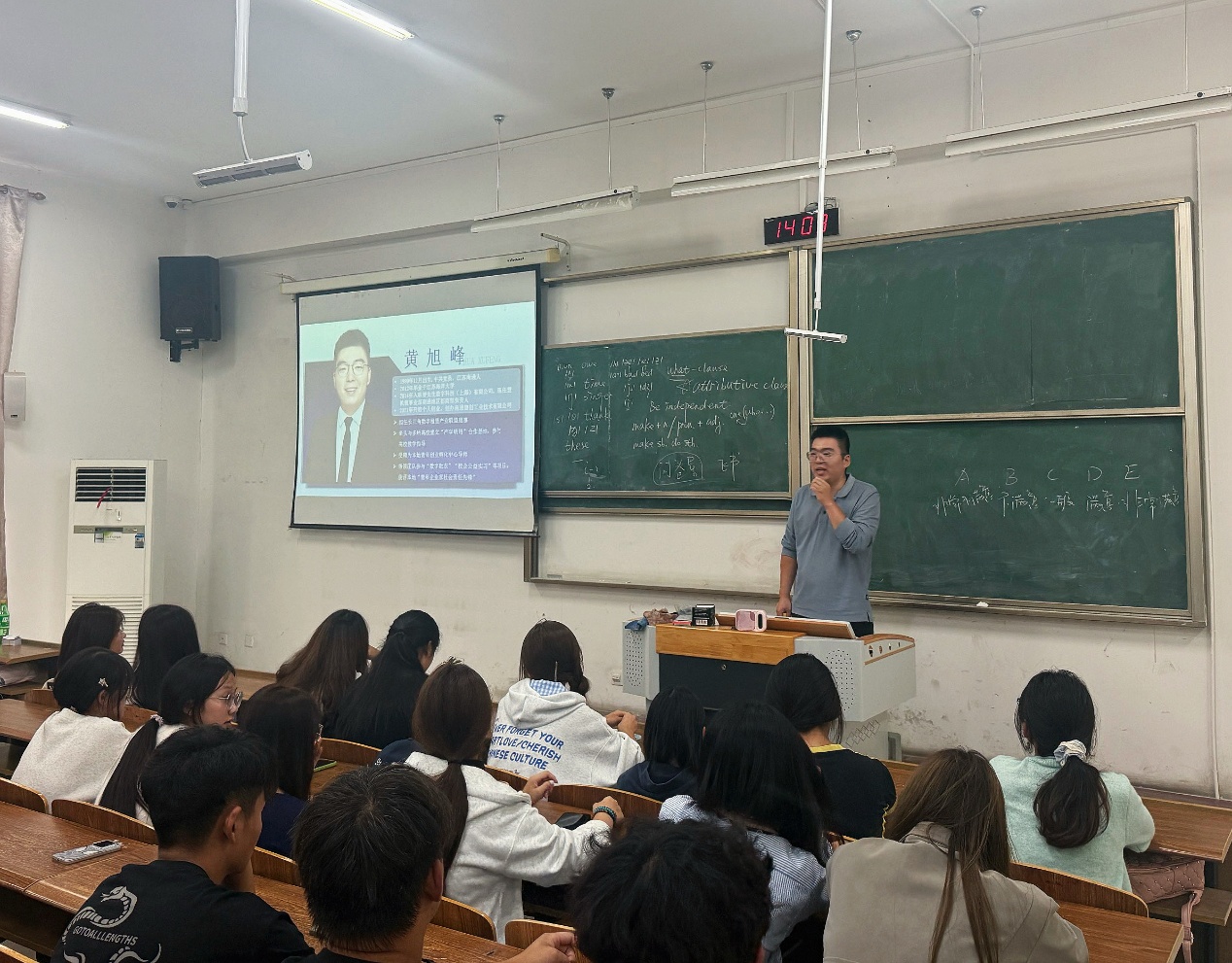 黄旭峰为新生带来了精彩的就业创业经验分享,他结合多年职场打拼和创业历程,从“职场入门:如何快速适应与成长”“职业进阶:核心竞争力打造”“创业之路:机遇与挑战并存”三个方面进行了深入浅出的讲解。谈到创业之路,他认为,创业需要激情和勇气,更需要敏锐的市场洞察力和严谨的商业计划,要充分进行市场调研,了解行业动态和市场需求,同时要组建优势互补的团队,共同应对各种挑战。他勉励新生,在校期间要注重培养创新思维和解决问题的能力,以应对不断变化的市场环境。